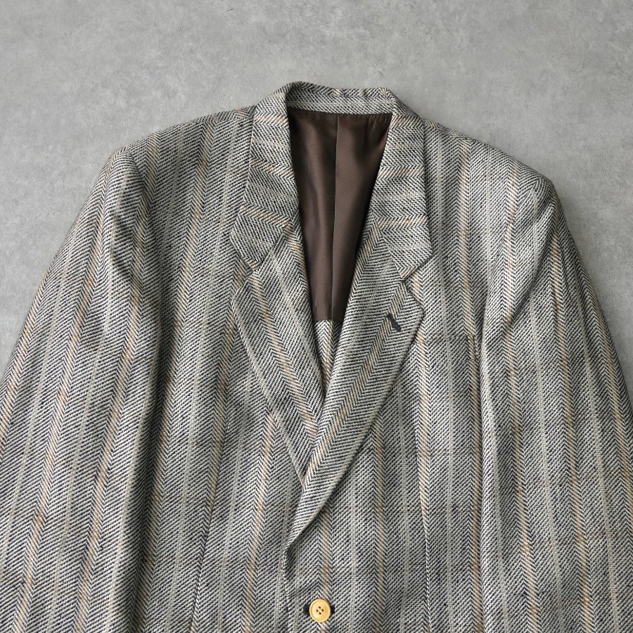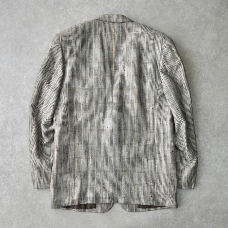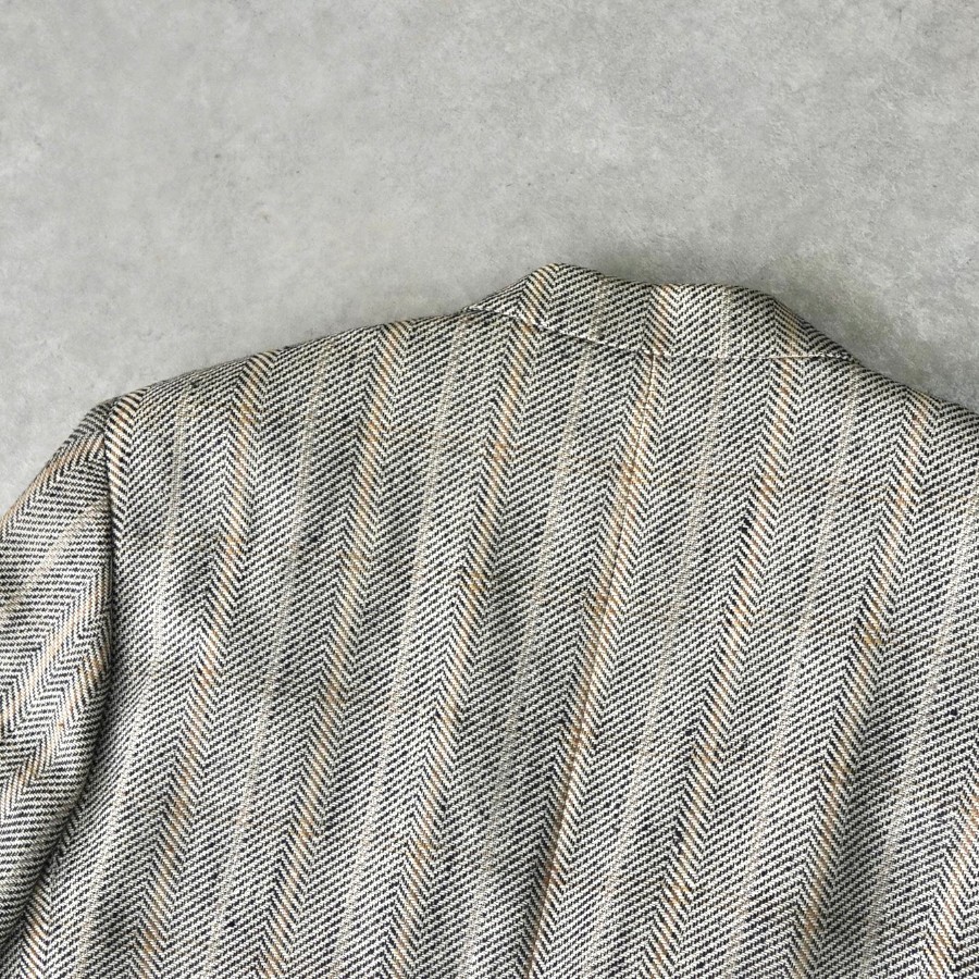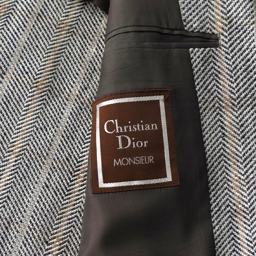 Christian Dior Vintage Herringbone 2-Button Single-Breasted Tailored Jacket, Unlined, White-Gray, Men's