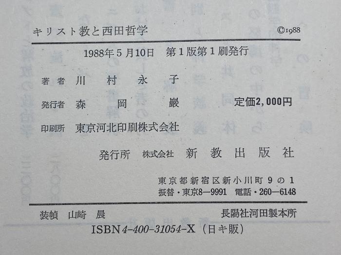 商品名:キリスト教と西田哲学 新教出版社 川村 永子
