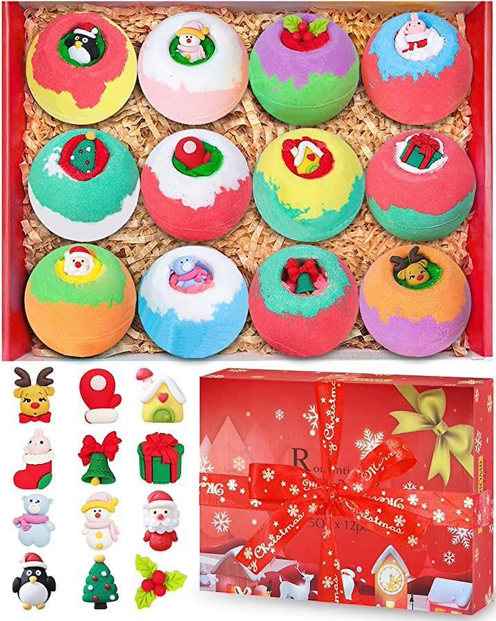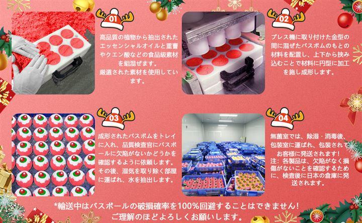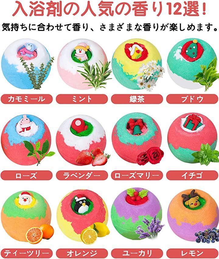 ・❄️「バスタイムが楽しくなる」バスボムには、クリスマスらしいかわいいおもちゃが付いているので、バスボムをお風呂に溶かすと、中に入っているびっくりするようなおもちゃが出てきます。