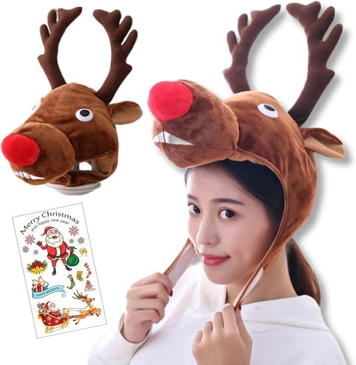 「セット内容」トナカイ被り物+クリスマスタトゥーシール「サイズ」男女兼用フリーサイズ「素材」短毛ボア・PP綿「特徴」保温性・軽量・コンパクト収納・伸縮性