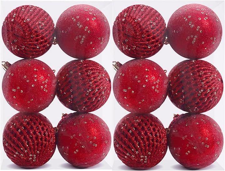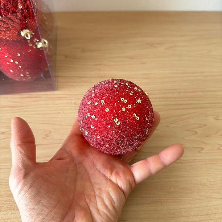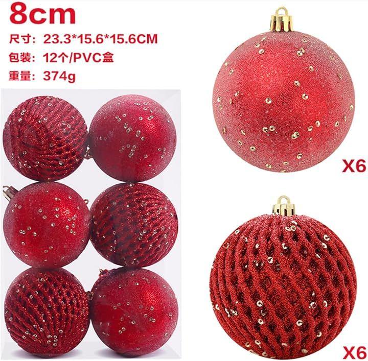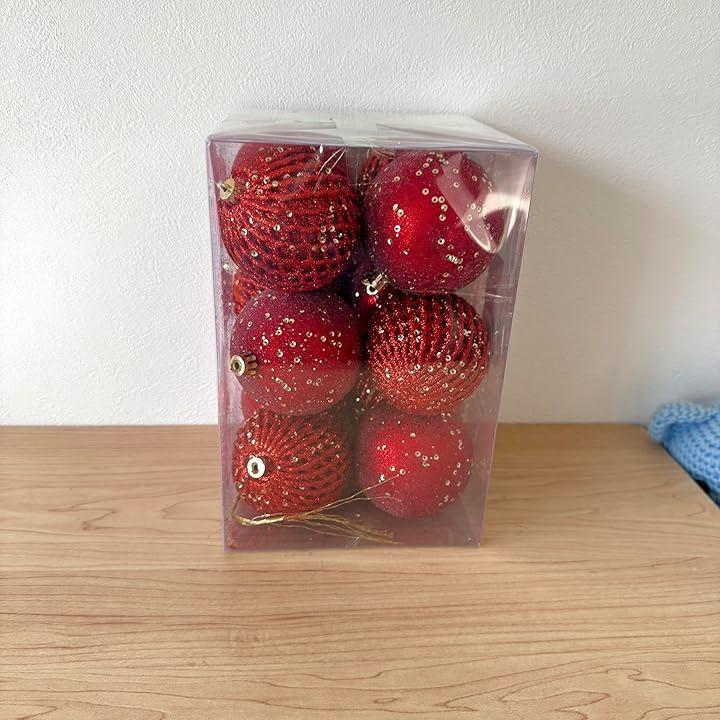 鮮やかな赤色の8cmサイズのキラキラしたクリスマスボール12個セットは、クリスマスツリーの装飾を一段と華やかに演出します。