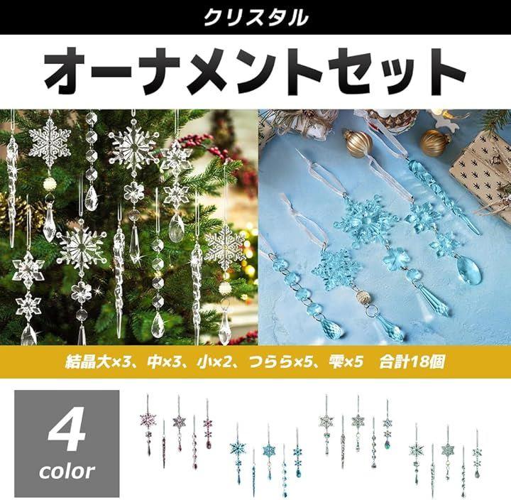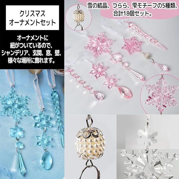 18個のクリスマスオーナメントが入っており、雪の結晶、つらら、雫モチーフが5種類入っています。