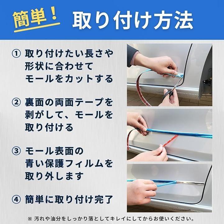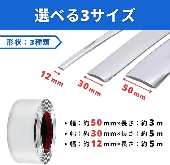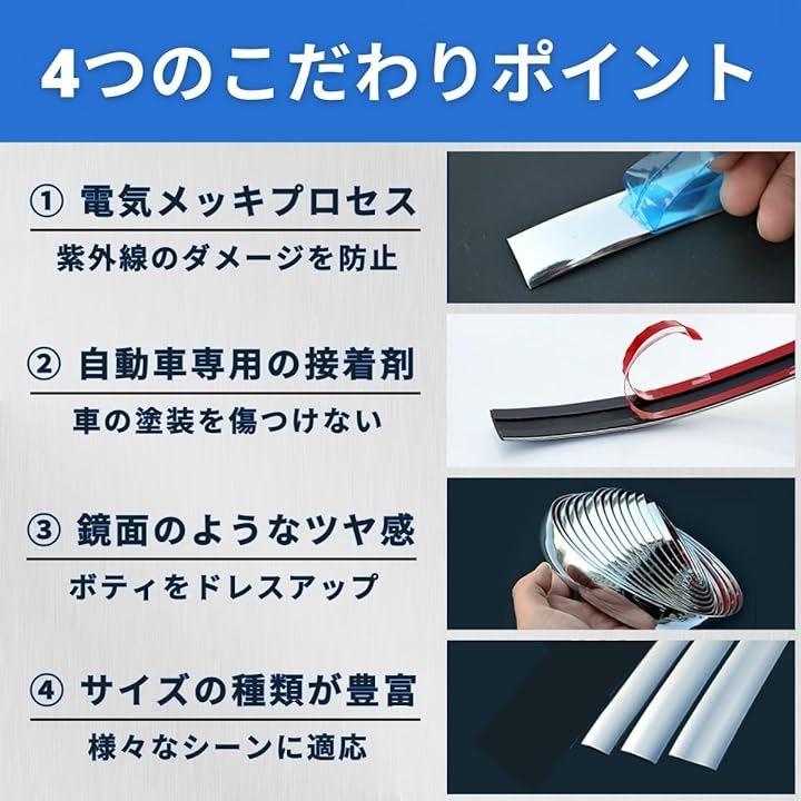 愛車のドレスアップ/ボディーの保護/キズ隠しに。メタリックシルバーのメッキモール。選べる3サイズ。長期間にわたって車体を保護し外部からのダメージから車を保護。