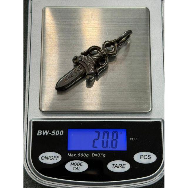 まるで本物のダガー(短剣)を思わせるような立体的フォルムが特徴。両面に彫り込まれた【CHROME HEARTS】の刻印でブランドアピールも表現されて、まさにクロムハーツらしいペンダントに仕上がっている。