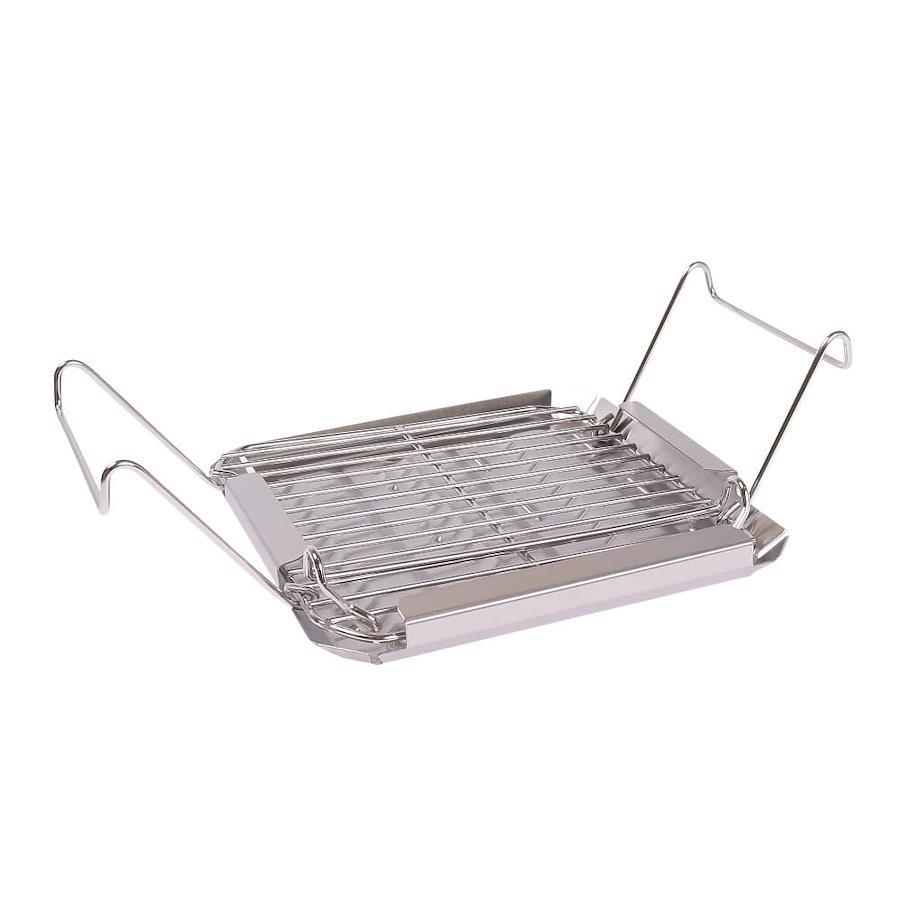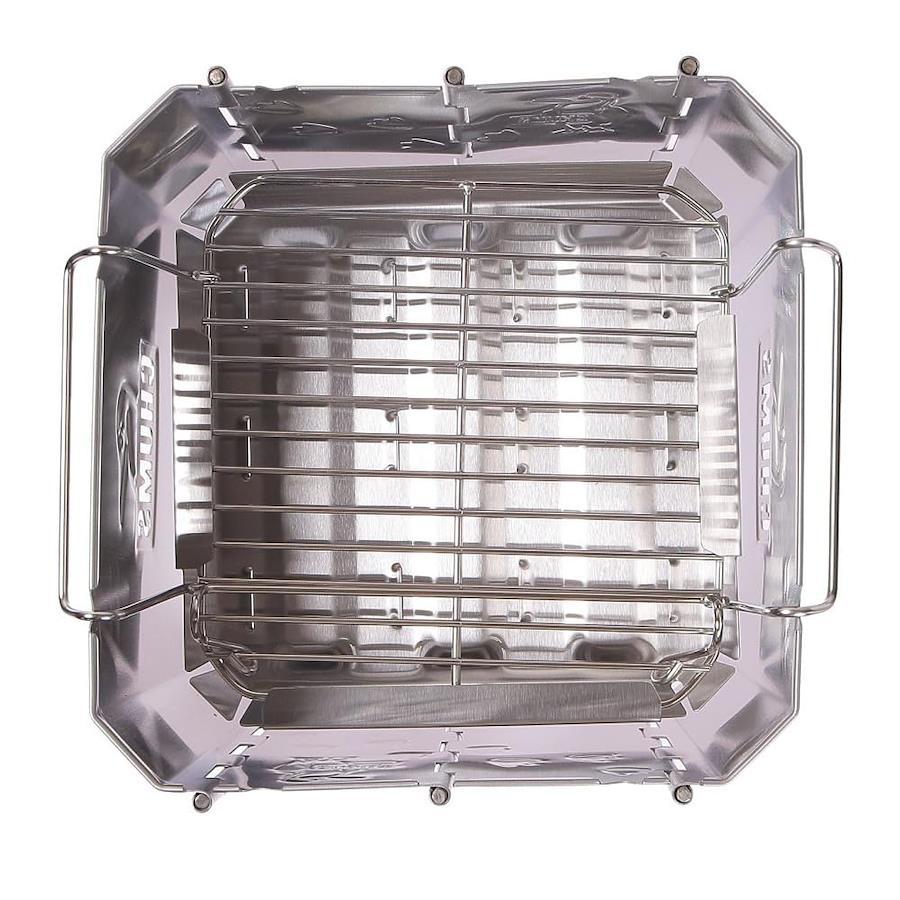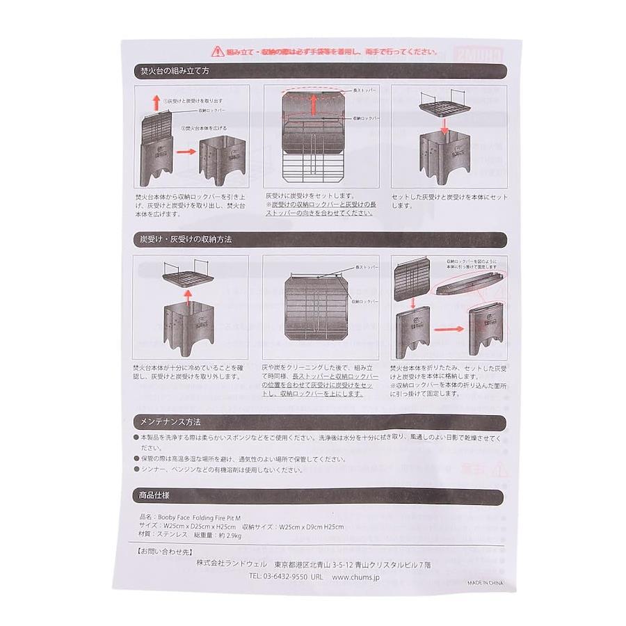 サイズ : M : W25×D25×H25cm・収納サイズ : W25×D9×H25cm重量 : 2.9kg素材 : ステンレススチール仕様 : ファミリーキャンプやソロキャンプ向け、薪 (炭) 受け・灰受けを本体にセットするだけのシンプルな設営方法、薪 (炭) 受けにはハンドルがついているので灰の片付けもしやすい、本体は折りたためば平たくなり、スリムに収納・携行が可能、ロゴや足跡モチーフを配した遊び心のあるデザイン、別売で専用収納ケースあり原産国 : 中国