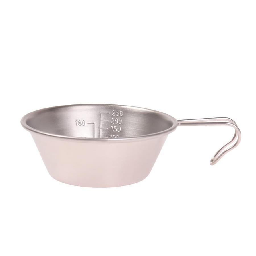 サビに強いステンレス製のシェラカップ。コップや食器としてはもちろん、直火にかけれらるので調理器具としても使用でき、アウトドアシーンで幅広く使えます。320mlサイズは取り皿、計量カップとしてなど幅広い用途で使いやすく、いくつあっても使えます。