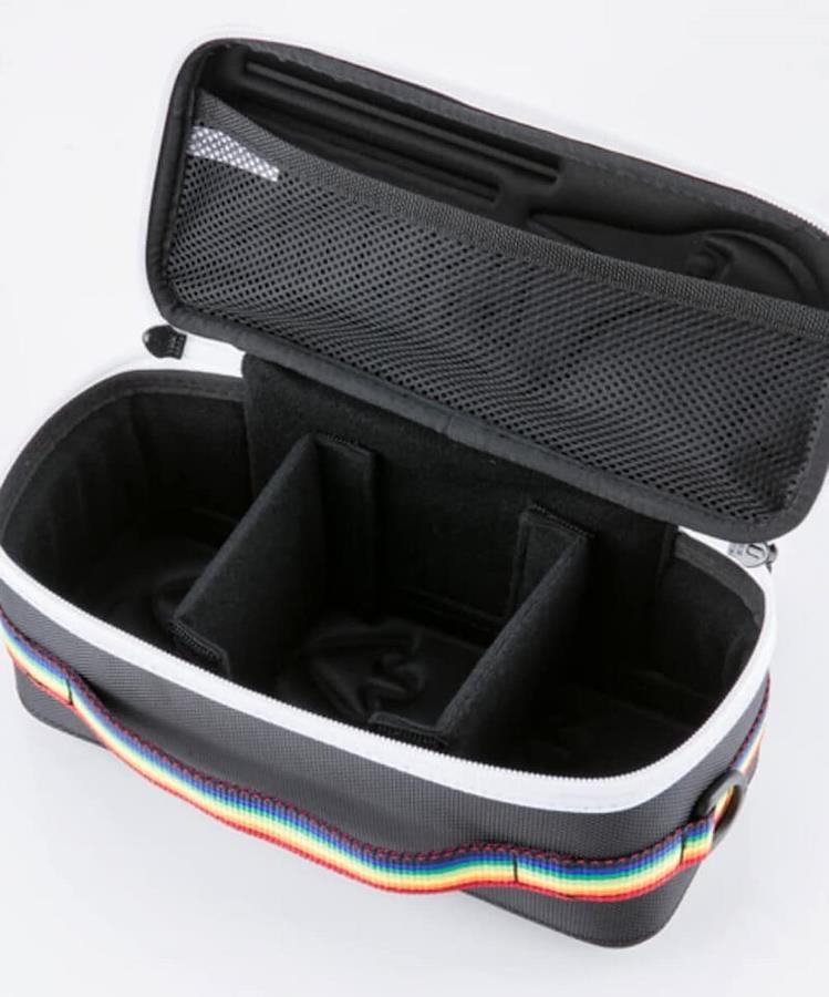 サイズ : S : H 10×W 24×D 11.5cmカラー : ブラック素材 : 蓋、底面 : EVA・側面 : ポリエステル100%仕様 : 蓋裏メッシュポケット、内側可動式の間仕切り (2枚) 付き、間仕切りはベルクロで側面に取り付け可能、蓋にはブービーバード、底面には足跡をデザイン、持ち運びに便利なハンドル付き、側面のDカンにはショルダーベルト (別売) の取り付けが可能原産国 : 中国