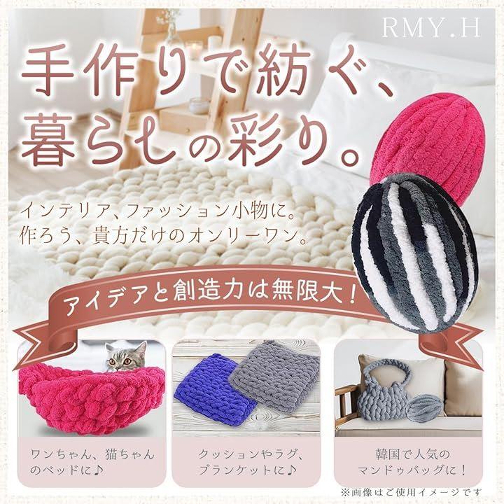 「製品の強み」太い分厚い糸は、ブランケットやセーター、クッションなど、さまざまなアイテムの作成に最適です。