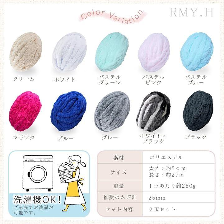 「簡単に編める」太さ25mmの極太毛糸は、初心者でも簡単に編むことができ、短時間で作品を完成させることが可能です。
