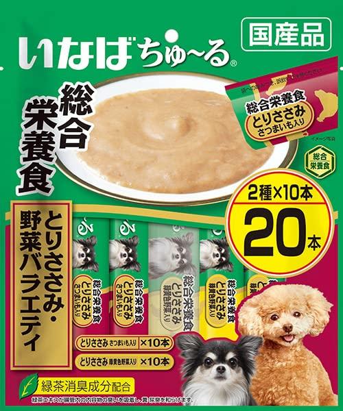好評のいなばちゅ~る総合栄養食20本入りのコンパクトサイズ。従来品よりも幅が100mm小さくなりました。2種類の味が楽しめるバラエティパック。