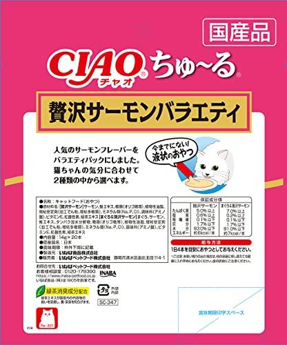 今までにない!液状のおやつ。好評のCIAOちゅ~るにサーモンベースのフレーバーが登場。2種類の味が楽しめるバラエティパック。