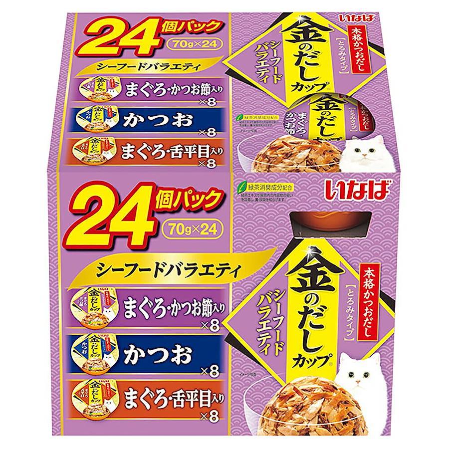 まぐろやかつおの丸ごとフレークをベースに愛猫の喜ぶ素材をトッピング。本格かつおだしを加えた、風味豊かなとろみタイプ。開けやすく、出しやすいカップ容器を使用。