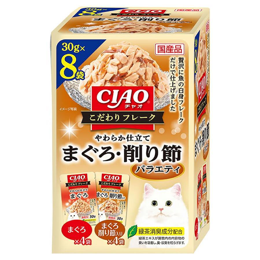 まぐろとかつおの白身フレークを焼津産かつおだしで仕上げました。猫ちゃんが食べやすい柔らかゼリーで包みました。食べきりやすい小容量タイプ。