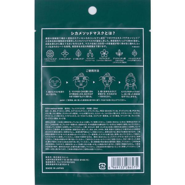 「ツボクサエキス」配合。肌を保護して整えます。●美容大国韓国で話題の「シカクリーム」。そのシカクリームのコンセプト成分である薬草「ツボクサ」のエキスを配合し、オリジナル処方で日本古来の植物成分などをプラスし、より日本人のお肌に合うようにと作られました。●シカメソッドマスクは美容液をたっぷり28mL配合し、お肌を滑らかに整えうるおいを与えます。●マスク生地にはお肌への密着度が高く保水性に優れたコットン生まれのシートを採用。●しっかり密着するので美容液を効果的にお肌の角質層まで届けます。●エッセンシャルハーブのすっきりナチュラルな香り。