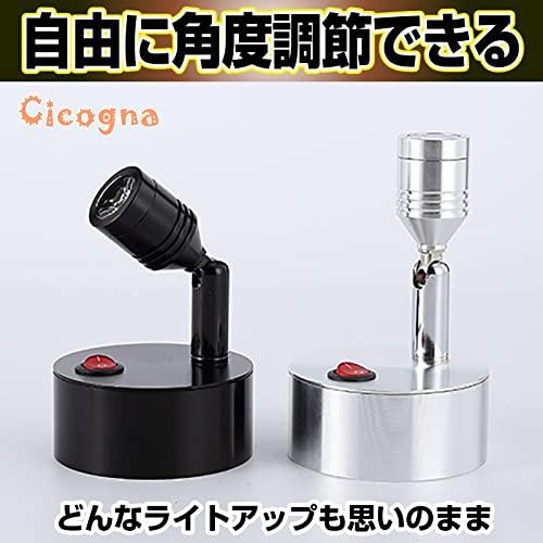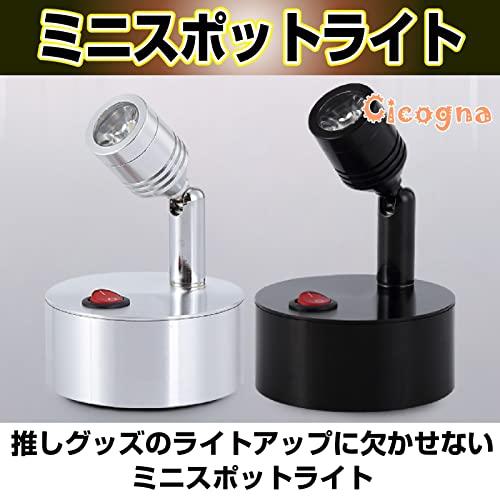 通常1-5営業日で発送:推しグッズのライトアップに欠かせない!ミニスポットライトです。シャープでクールな印象の昼白色ライトで空間を演出!アニメグッズ、プラモデル、ガンプラなどをライトアップすれば、対象物をより鮮明に美しく魅せられます。自由に角度調節できるから、どんなライトアップも思いのまま。バックライトの当て方で陰影が加わり、キャラクターの表情も違って見えます。お気に入りをスポットしたり、間接照明として雰囲気を演出したりと、使い方は無限大です!アイドルフィギュアを照らして、ライブ風景を再現しても◎電池式(単四電池×3本)だから配線いらずでどこでも使える!(※電池は付属しておりません)。ショーケースやディスプレイケースの中に入れれば、簡単に光るケースが完成します。コンセントが届かないちょっとしたスペースにフィギュアを飾りたいときにもぴったりです。台座タイプでコンパクトなホビーライトは、ドールやフィギュア撮影時のライティングとして使うのもおすすめ。持ち運びもラクラクなので、撮影会で遠征するときでも照明を確保でき便利です。【カラー】ブラック、シルバー 【サイズ】高さ: 約10.5cm、台座直径: 約7cm