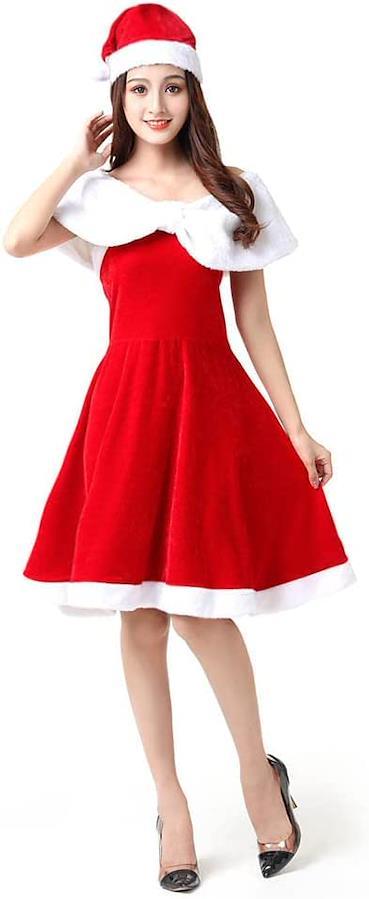 [circle chocolate] クリスマス サンタクロース コスプレ用 コスチューム レディース 女性用 ガーリーサンタ 各場面 お祝い パーティー イベント 可愛い サンタ衣装 手袋なし