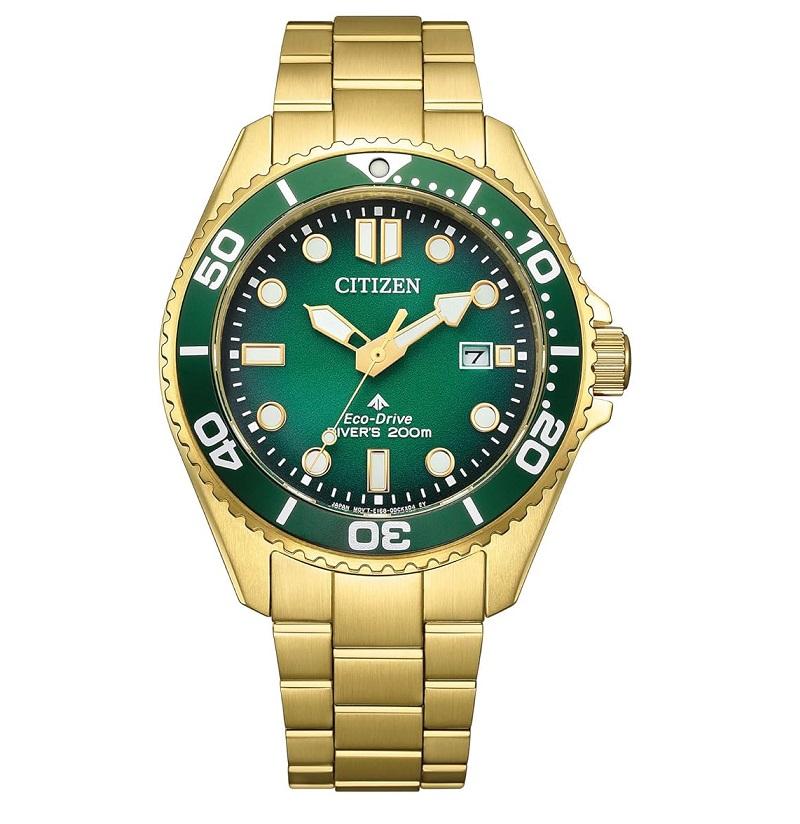 ブランド PROMASTER(プロマスター)型番 BN0262-59W型番 BN0262-59Wケースの形状 円形風防素材 サファイアガラス表示タイプ アナログ留め金 三ツ折れプッシュタイプケース素材 ステンレス鋼ケース直径・幅 40.6 millimetersケース厚 11.7 millimetersバンド素材・タイプ ステンレス鋼バンドサイズ 男性用標準バンド幅 20 millimetersバンドカラー ゴールド文字盤カラー グリーンベゼル素材 ステンレス鋼ベゼル機能 ダイビングベゼルカレンダー機能 デイトその他 機能 光発電エコ・ドライブ, 200m防水, サファイアガラス, ステンレスケースバンド, グリーンディスプレイ, ゴールドバンドムーブメント 日本製クォーツ耐水圧 200 mメーカー保証 メーカー保証