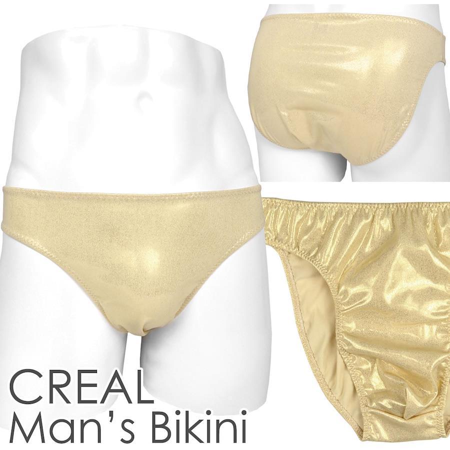 Claire Men's Bikini Shorts, Shiny Glitter Print, Gold, Size M