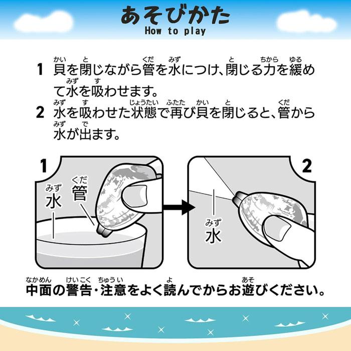 もう一度貝殻を押すと、お水がぴゅ〜っと飛び出します!