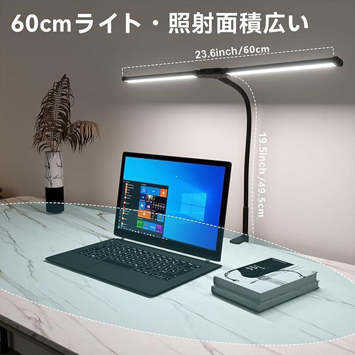 「広域両頭デザイン」両頭LEDデスクライトの60cm広幅バーがデスク全体をムラなく照らします。