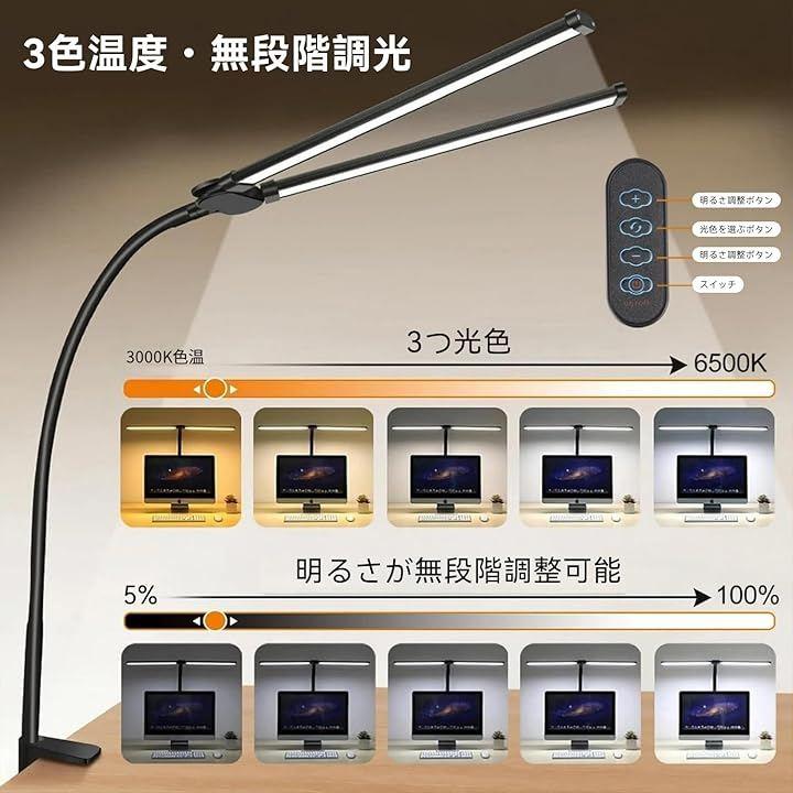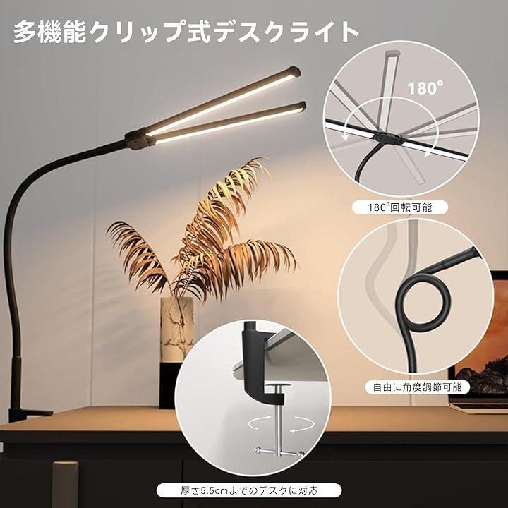 Clamp-on Desk Lamp, USB-Powered, Dual Light Source, 3 Color Temperatures, Stepless Dimming, Adjustable Angle, Memory Function, Bright, Eye-Friendly, Timer Function, for Studying, Reading, Monitoring, and Working