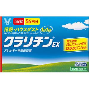 ■商品概要メーカー:大正製薬商品名:クラリチンEX 56錠医薬品分類:第2類医薬品区分:OTC医薬品小児用区分:大人用(大人(15歳以上)の用量・用法しかない)薬剤形状:錠剤・丸剤・カプセル内容量:56錠商品概要:花粉・ハウスダストなどによる鼻みず・鼻づまり・くしゃみに【使用期限】出荷時点で使用期限終了まで1年以上JANコード:4987306050068商品コード:079514374