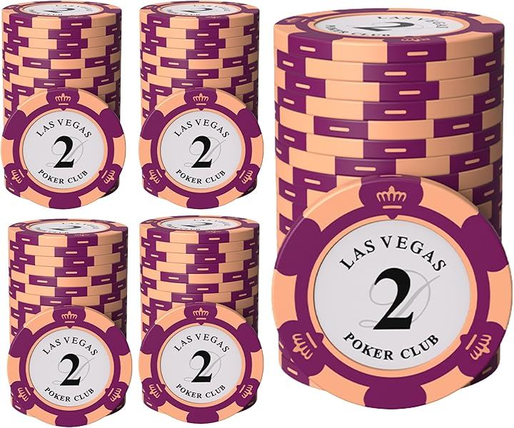 「仕様」 内容:クレイ製ポーカーチップ(面値2x100枚) 重量:約14g/枚 サイズ:約直径40mm x 厚さ約3.3mm 素材:クレイ+メタルインサート(鉄芯) 梱包:ケースなし(簡易包装)