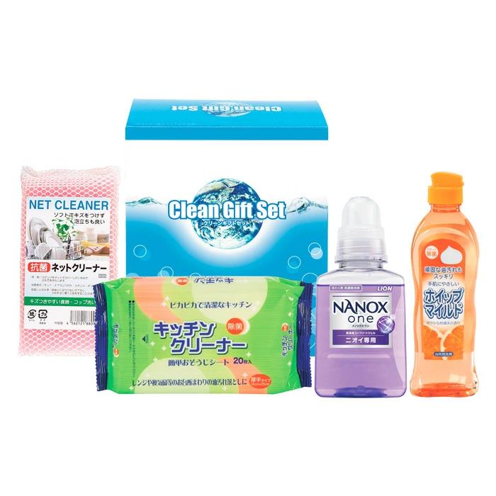 ライオントップナノックス380g、ホイップマイルド(台所洗剤)250ml、キッチンクリーナー(20枚入)、抗菌ネットクリーナー×各1
