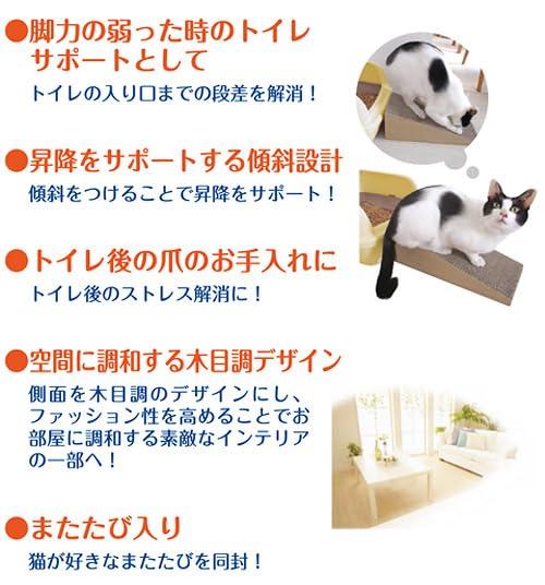 トイレの入り口までの段差を解消。トイレ後のストレス解消に。猫が大好きなマタタビ入り。
