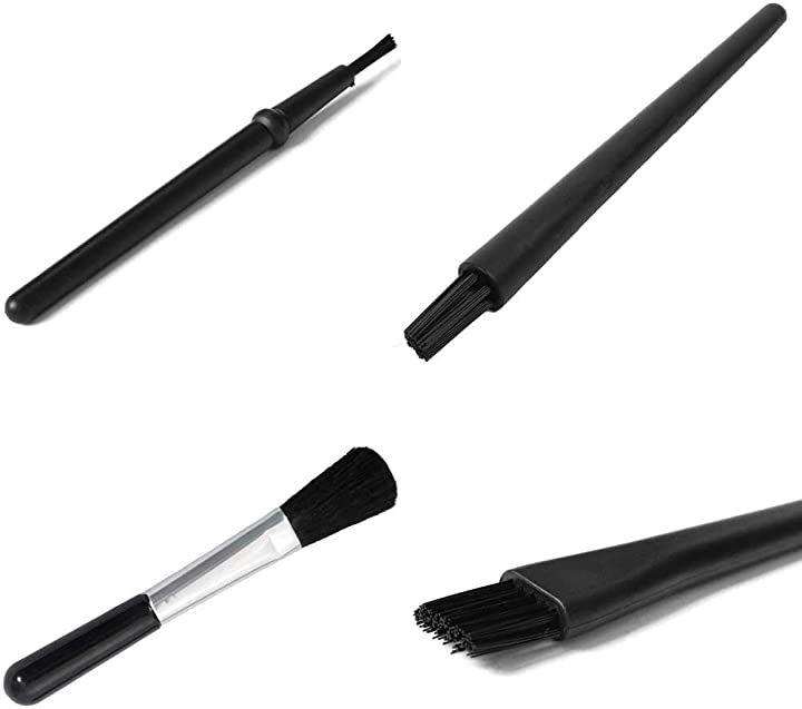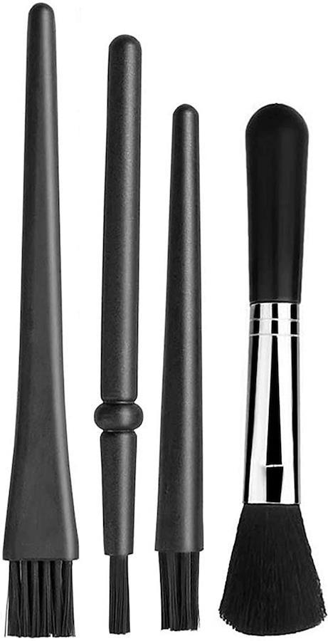 堅い毛先の隙間用ブラシ3本は、キーボードの隙間やPCの冷却ファン、車のダッシュボード、シェーバーやコーヒーミルの掃除に便利。