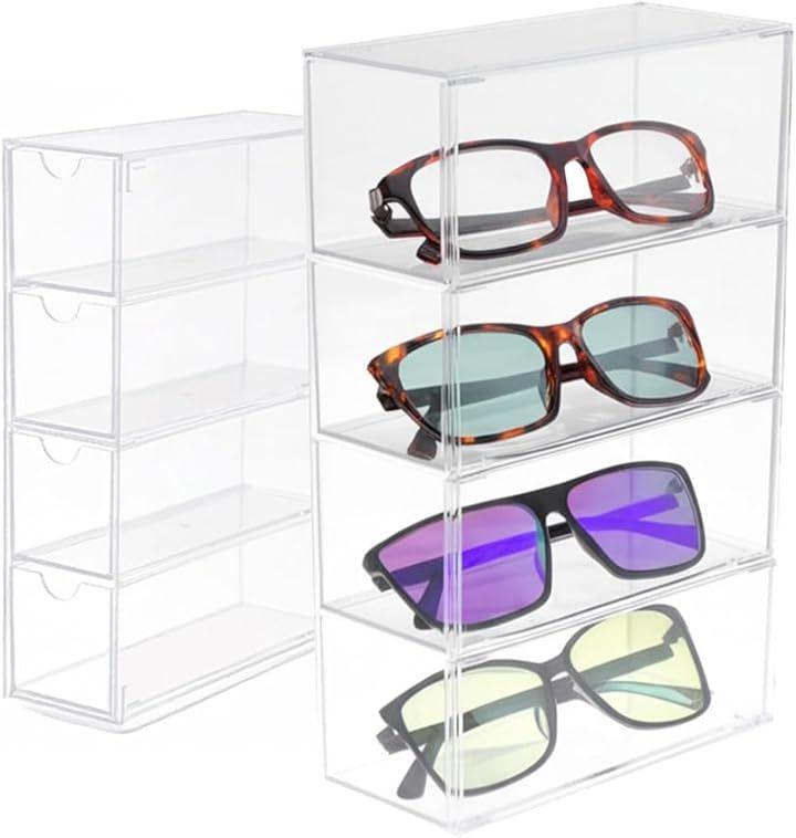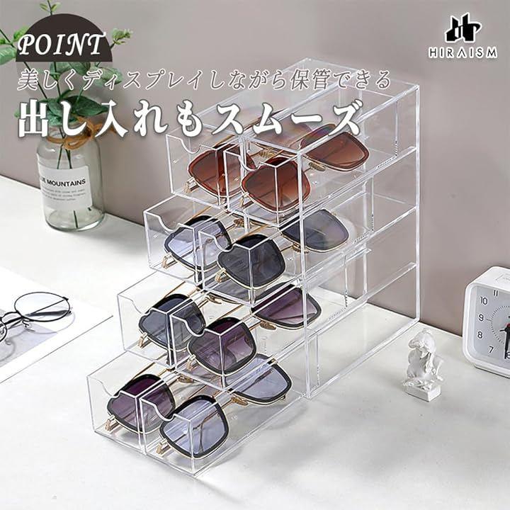 「透明アクリルで中身が一目瞭然」クリアなアクリル素材を採用し、収納したサングラスや眼鏡、小物類を美しくディスプレイしながら保管できます。