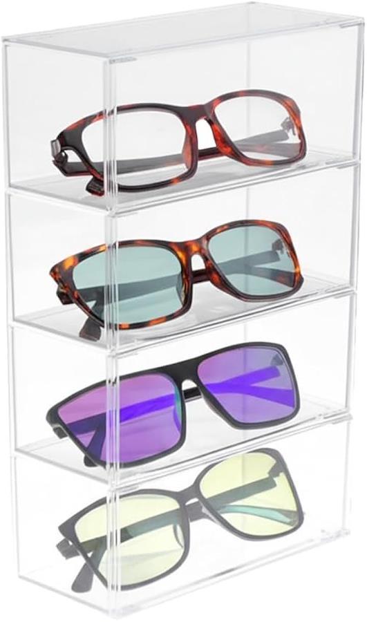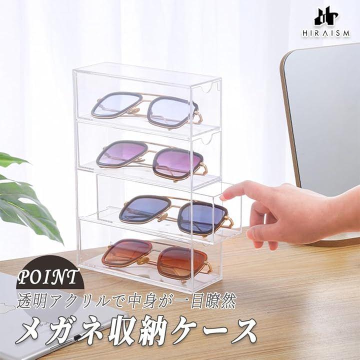「透明アクリルで中身が一目瞭然」クリアなアクリル素材を採用し、収納したサングラスや眼鏡、小物類を美しくディスプレイしながら保管できます。
