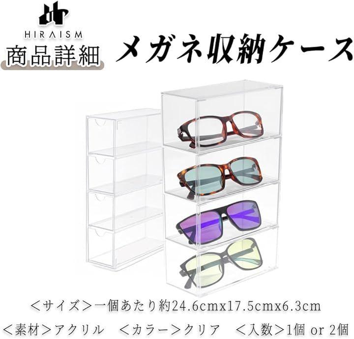 「商品内容」メガネ収納ケース <サイズ>一個あたり約24.6cmx17.5cmx6.3cm <素材>アクリル <カラー>クリア <入数>1個 or 2個