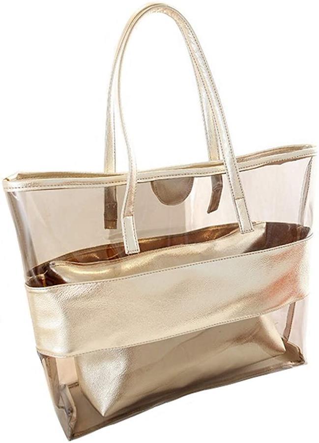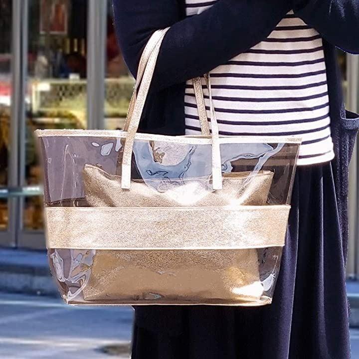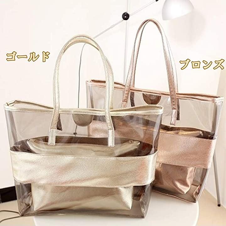 クリアバック透明バックビニールトートポーチ付き2way肩掛けバックpvc
