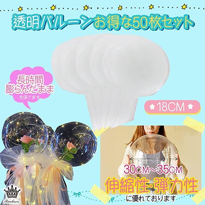 ・「商品仕様」セット内容:透明バルーン 合計50枚セット サイズ:(膨張前)約18cm , (膨張後)約30cm~35cm カラー:透明 *モニターの環境等により、色の見え方に若干差が生じる場合がございます。