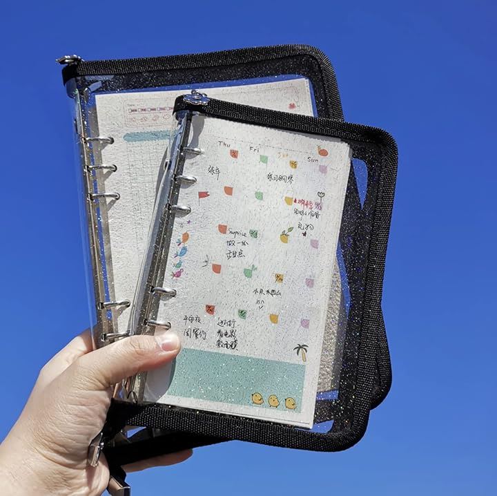 Clear File Binder Holder Mini 6 Hole Bromide Case System Notebook Refill with Glitter Korea Deco with Zipper