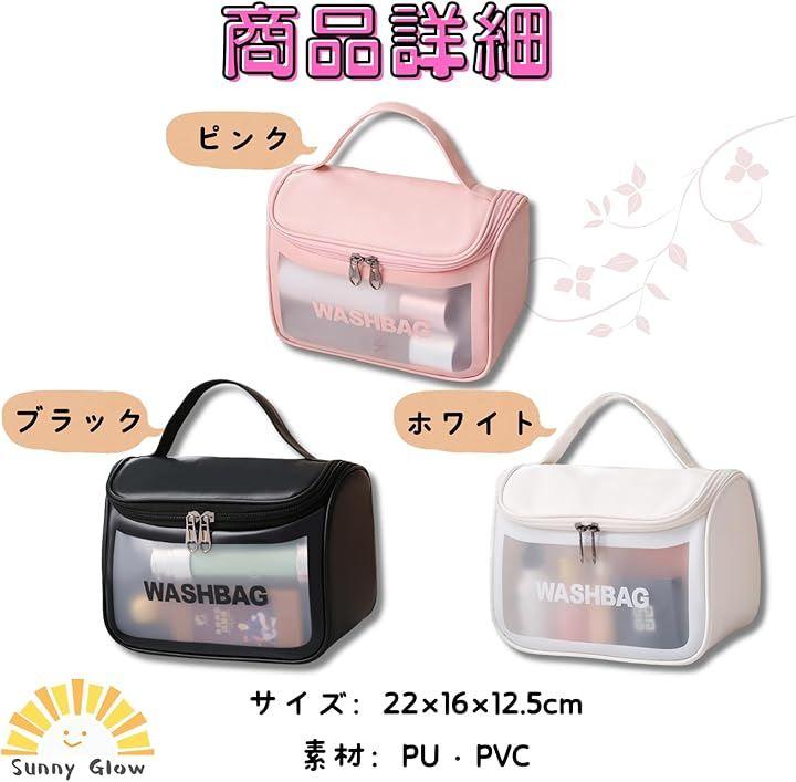 「商品詳細」サイズ:22x16x12.5cm、素材:PU・PVC、カラー:ピンク、ホワイト、ブラック