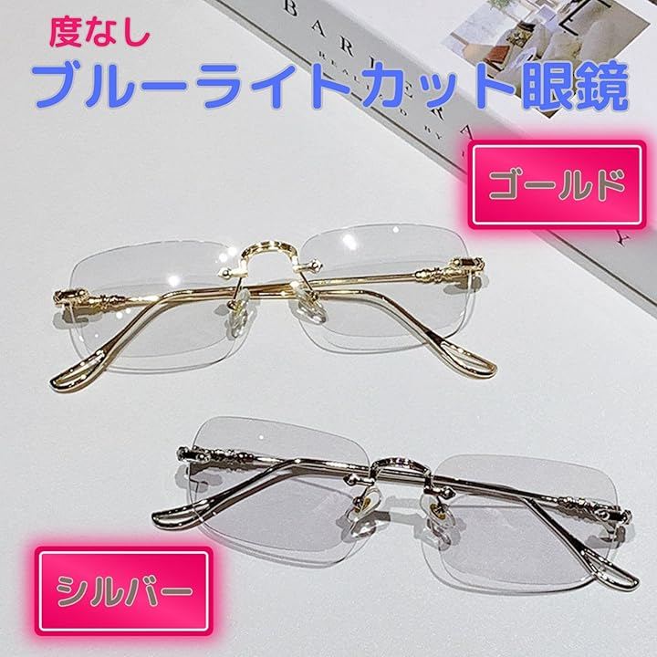 「ブルーライトカットメガネ」度なしフチなしのブルーライトカットメガネです。