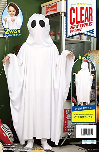 通常1-5営業日で発送:シーツを被ったお化けをイメージしたコスチューム。脇は縫われているので袖のように手を通せます。黒いメッシュ部分から外界を見ることができます。顔部分はフード仕様になっているので歩く時はフードを外すのが安心です。子供のテンションの上がるポンチョ、大人用もあるので親子で着用しても盛り上がります。
