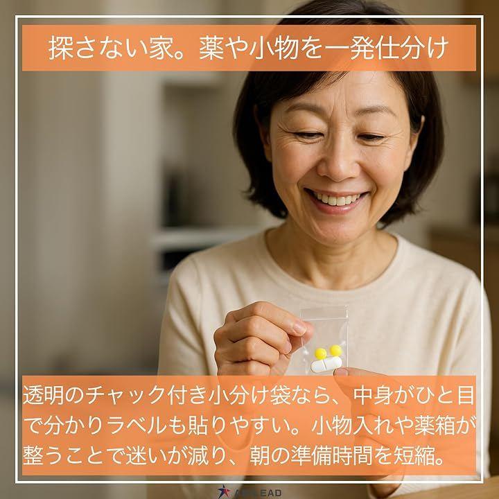 「さっと取り出せて迷いにくい」透明だから中身がひと目で分かり、1袋1回分の仕分けがしやすい袋です。