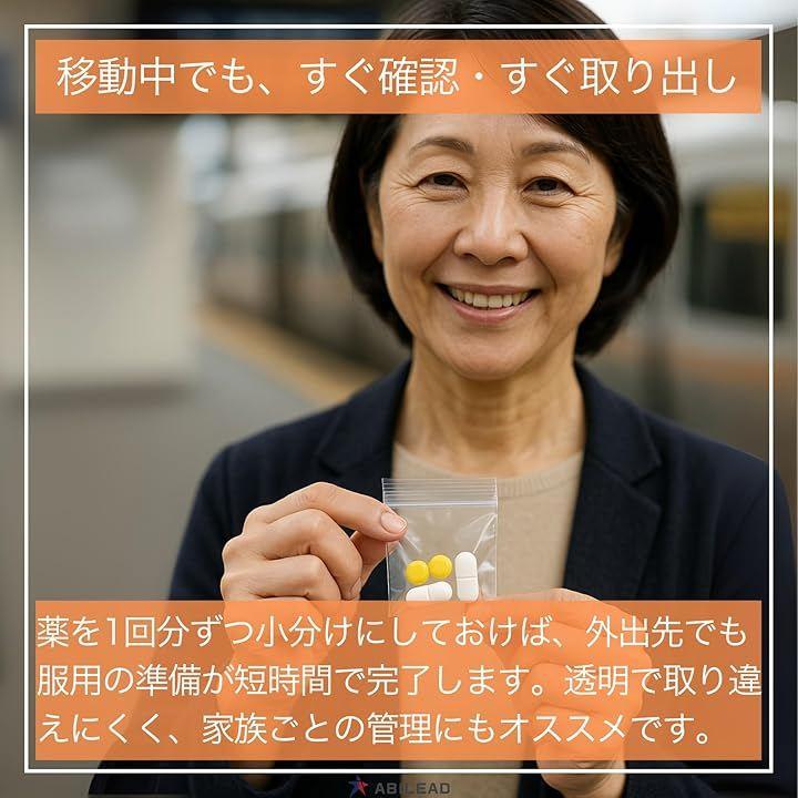 ひと袋をひと回分として仕分けできるので、通院前や外出前の準備がていねいに進み、必要なものにすぐ手が届きます。