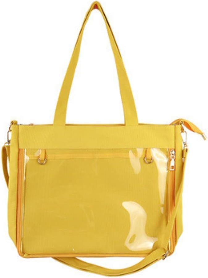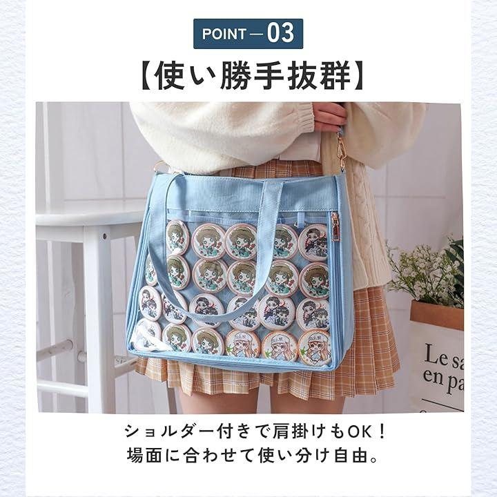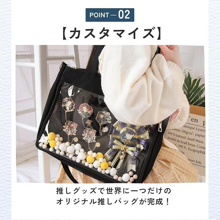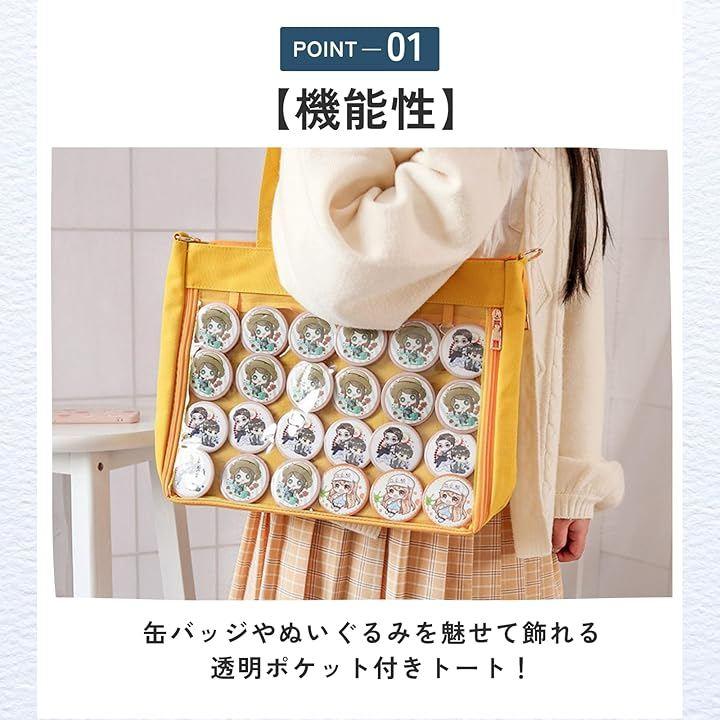 「機能性」缶バッジやぬいぐるみを魅せて飾れる透明ポケット付きトート。