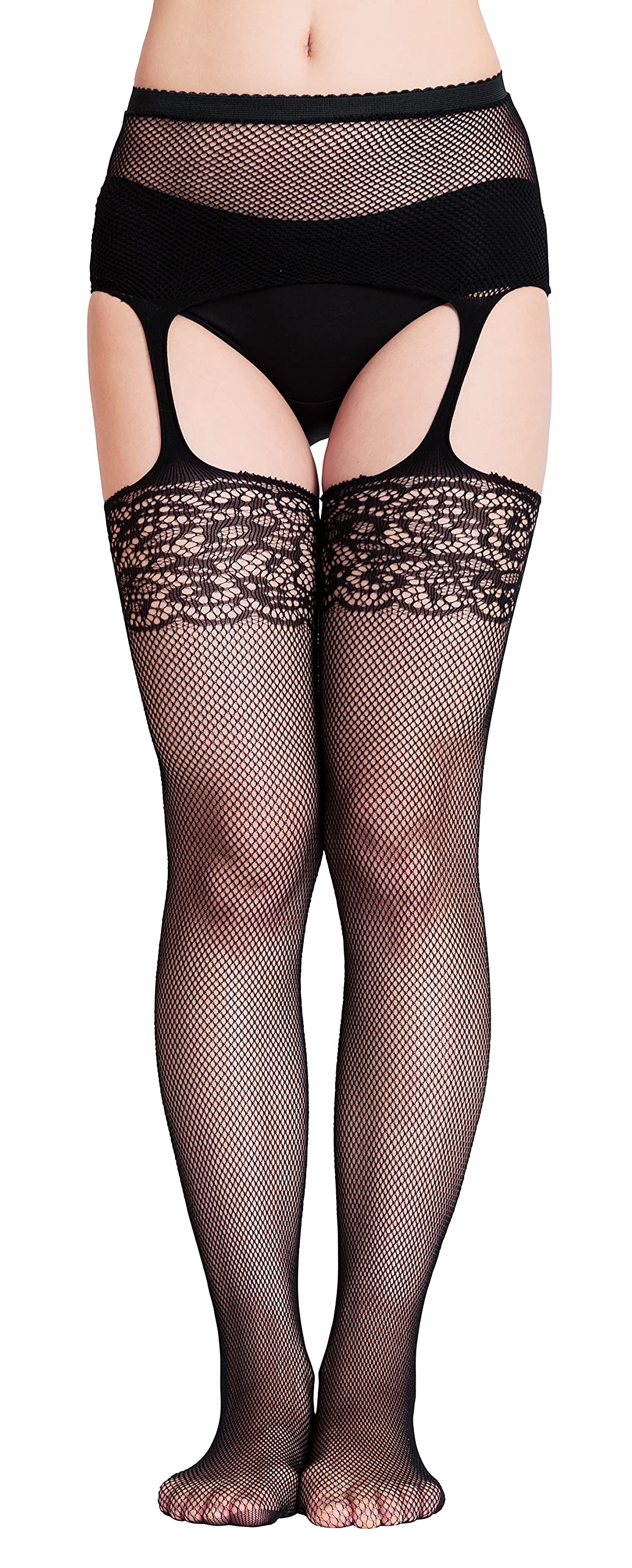 ヒップや太ももに圧迫感無く履けるレースガーターストッキング。