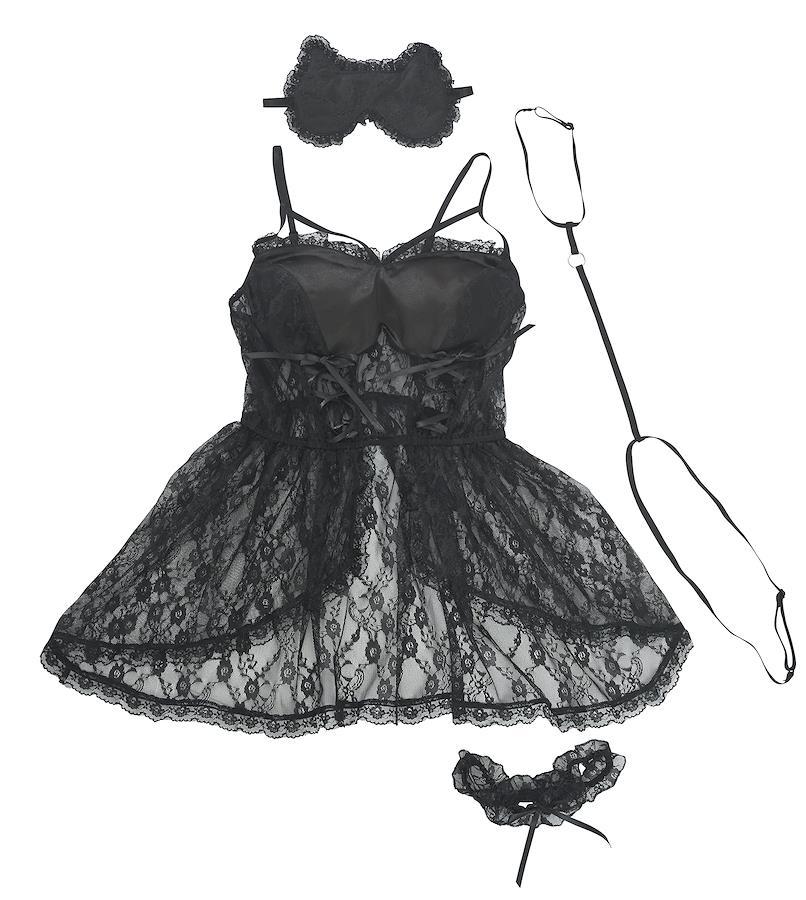 アイマスクとベビードールがセットになった「poppy doll(ポピードール)」シリーズ。白いポピーの花言葉は「眠り」。ねこ耳型のアイマスクと、ブラックレースとサテンの組み合わせが大人可愛い。首から腰に続くハーネスがフェティッシュ。撮影する時、お泊りでお喋りする時には、ヘッドドレスみたいに付けるのもオススメです。肩紐調節有り。背中はシャーリングゴム仕様。【推奨サイズ】Ladies:身長155~165cm、B/~90cm、W/~70cm、H/~96cm【注意事項】※生産時期やロット、デザインによって、多少サイズ・色・柄が異なる場合があります。摩擦や水濡れにより色移りする恐れがありますのでご注意ください。※商品画像は可能な限り実物の色に近づくよう調整しておりますが、お使いのモニター設定、お部屋の照明等により実際の商品と色味が異なって見える場合がございます。又、同じ商品の画像でも、撮影環境によって画像の色に差異が生じる場合がございます。【洗濯表示】洗濯機不可、弱い手洗い可、塩素系漂白剤による漂白不可、アイロンは中温で当て布使用、ドライクリーニング不可 ※クリーニングはお避けください。色落ちの可能性がありますので、他のものとの洗濯はお避け下さい。アイロンは、当て布使用して下さい。【製造元】株式会社クリアストーン(#lf)(#lf)(#lf)商品購入前に、ストア紹介ページをご確認ください。