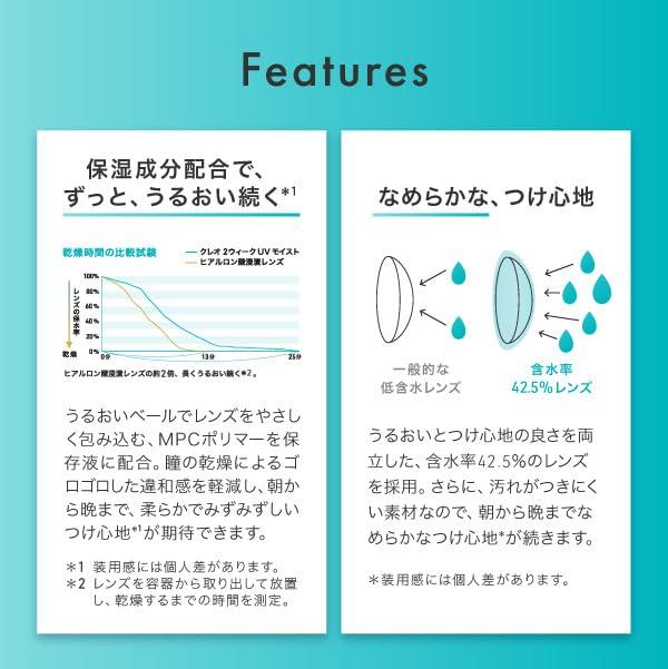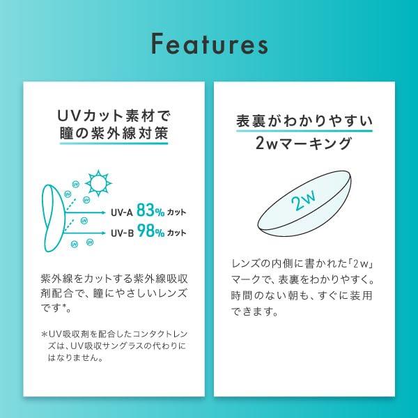 2週間交換タイプ 「1箱6枚入り/片眼3ヵ月分」 医療機器承認番号:22800BZX00043A04 ◆ DIA(直径):14.0mm ◆ BC(ベースカーブ):8.7 ◆ 中心厚:0.07mm ◆ 含水率:42.5%