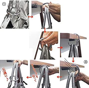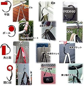 耐荷重15kgで抜群の安定感。これは便利!バッグハンガー。【特長】・便利なバッグハンガーです。・バッグの持ち手に付けて、必要なときにすぐに使えます。・平らな平面だけではなく、引っ掛ける場所があればどこでもご利用いただけます。 (テーブル/カウンター/ドアの上/ドアノブ/イス/フェンス/ベビーカー/ ショッピングカート/車の座席/手すり/などなど)・パーティでグラスに付けると、目印に。・テーブルなどの表面に接触する部分のパッドは、滑り止めとしての役目だけでなく 表面に傷をつけないように工夫されています・使い終わってバッグを持ち上げると、そのままヒンジが閉じてストラップの根元に 戻ります。・クリッパはいつもバッグのストラップにあるので、バッグの中から探す必要が ありません。 【使用方法】(1)バッグの持ち手に付け、(2)開閉部を開き、(3)フックの片方をバッグに(4)他方を設置場所に引っ掛けてください。