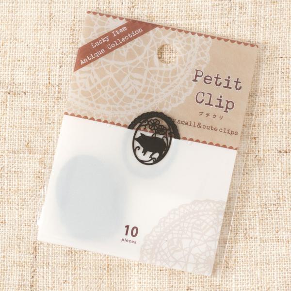 猫のクリップで人気の「プチクリ」に、ラッキーモチーフが登場。身に付けると幸運が訪れると言われるラッキーモチーフと、アンティーク調を組み合わせたお洒落でキュートなクリップです。電子部品に使われる日本の精密加工技術を用いているので、レースのなど細かいところまでしっかりと作られているのが特徴。クリップとして使うのがもったいないくらいの品です。いろいろな場面でご活用下さい。クリップサイズ:横19×縦23×厚0.3(mm)、パッケージサイズ:60×80(mm)、素材:ステンレス・ラッカー黒塗装、内容量:10個入り
