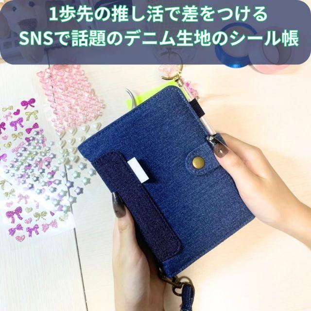 カラー:ブルー◆商品名:CLOGRATIAシール帳デニム手帳型バインダーコンパクトシール収納コレクションブックかわいい推し活文房具