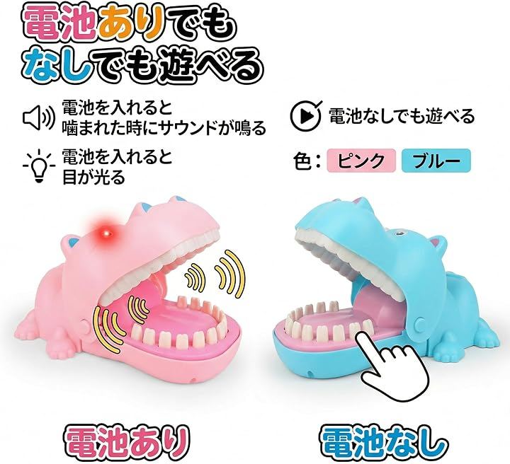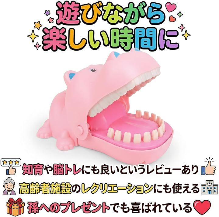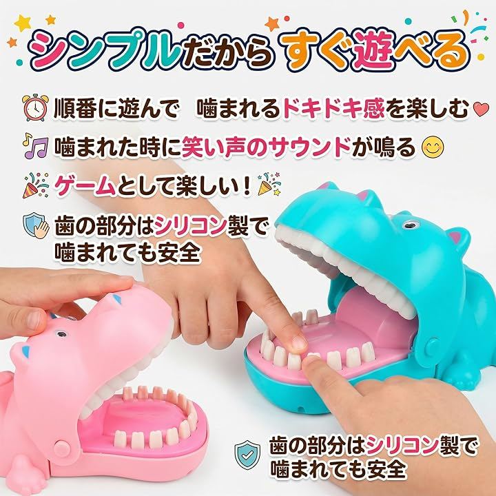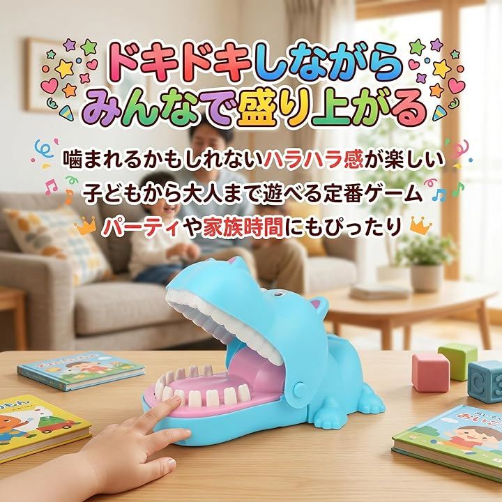そっと歯を押して、ガブッとされたら負け。シンプルながら大人も子供も夢中になれる危機一髪 ゲームです。