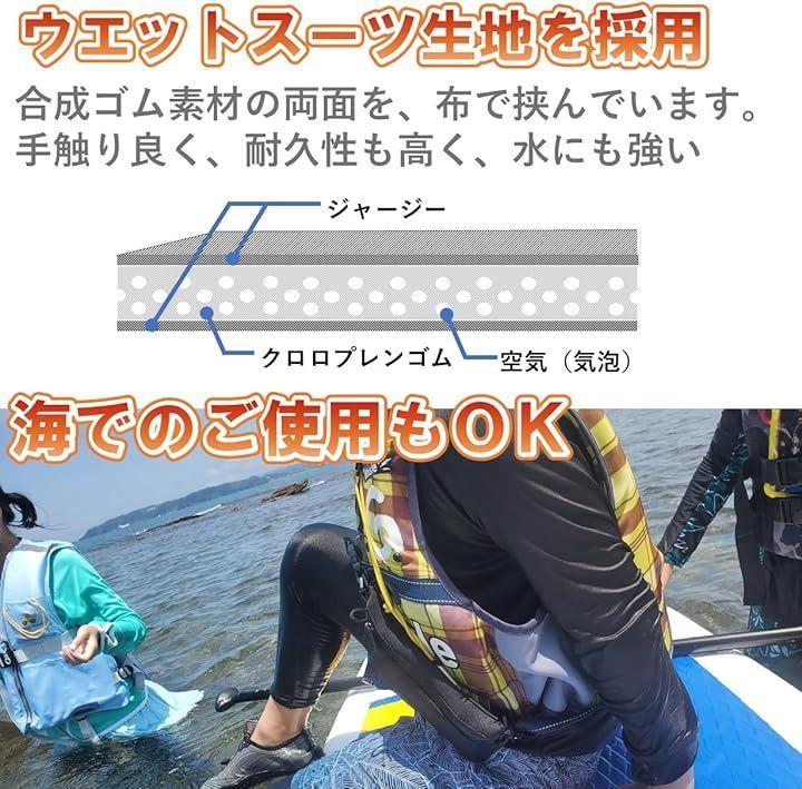 約2mmのウエットスーツ素材を使用し、最薄部約6mmに仕上がっています